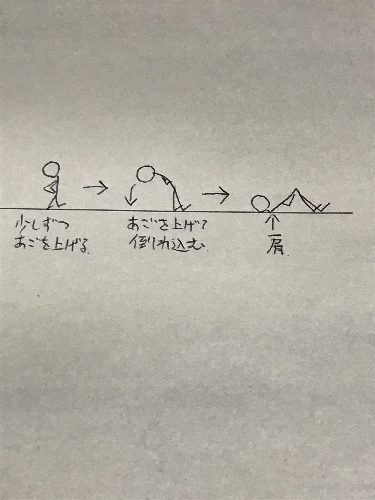 この時もマットに一番最初に触れるのは肩(首の付け根の後ろあたり)になるように意識して跳んでみてください。